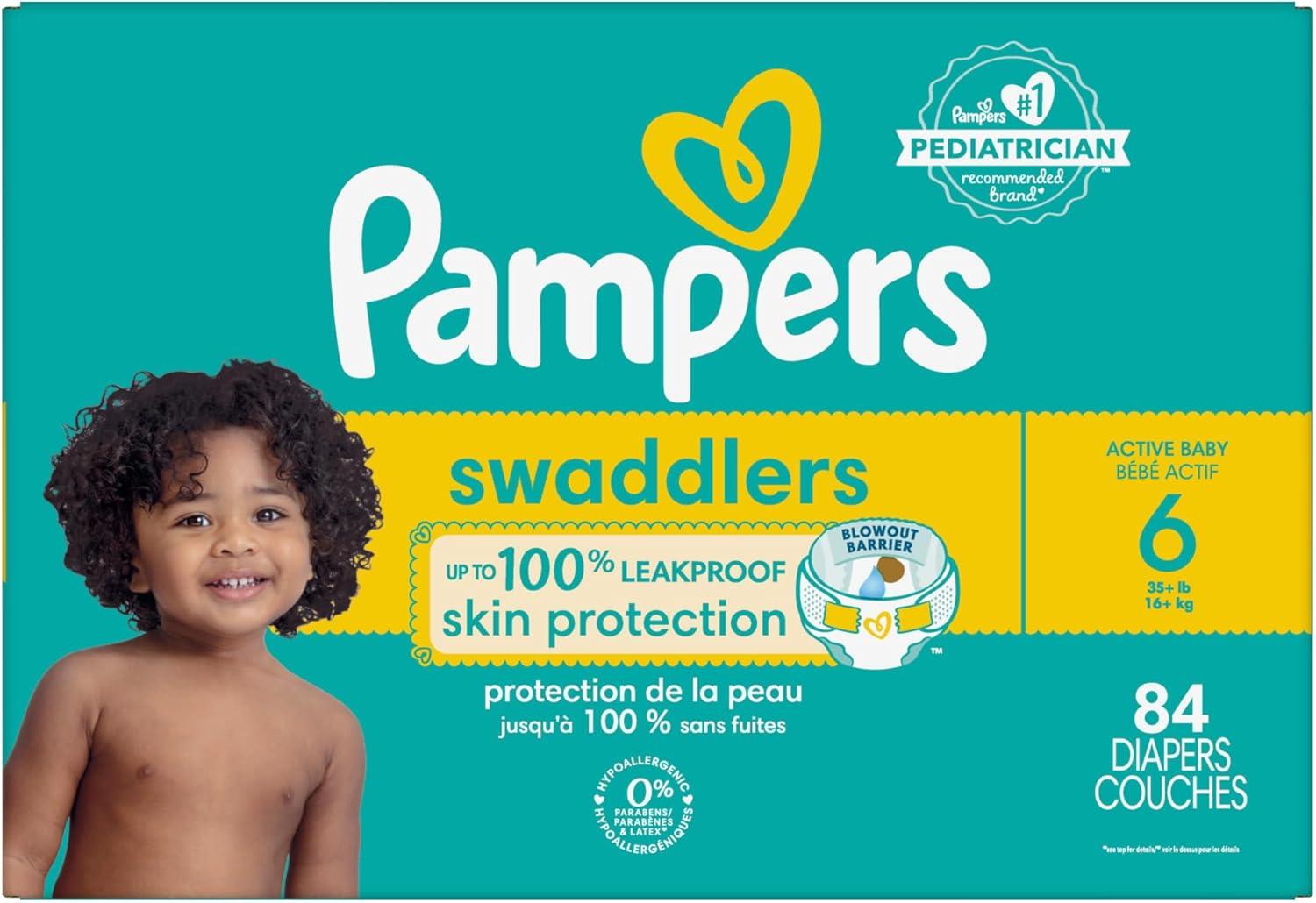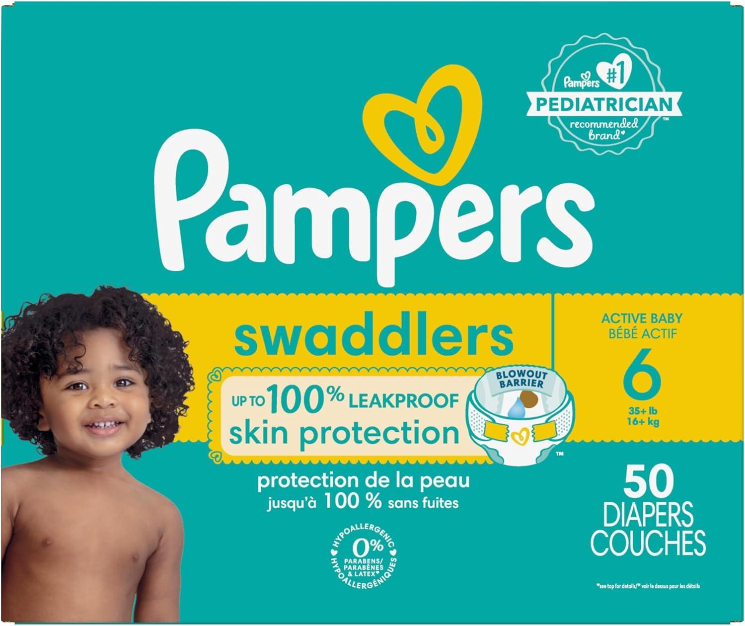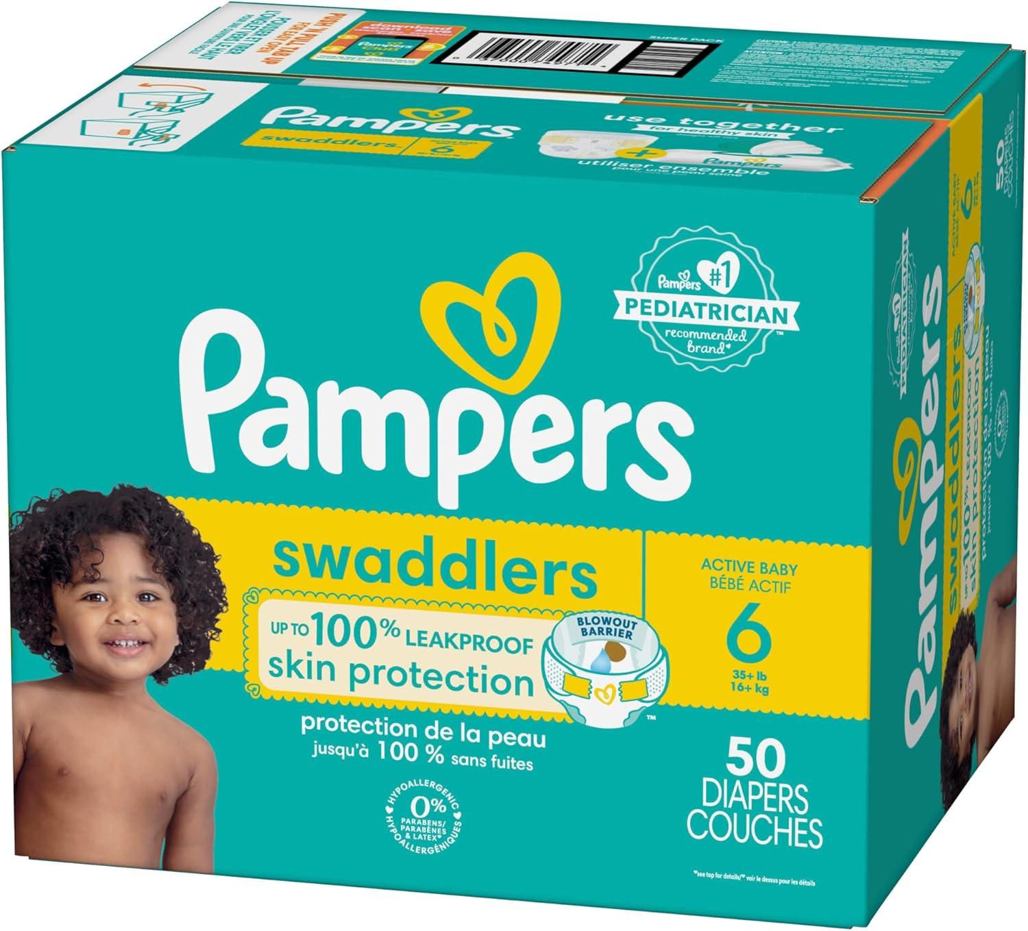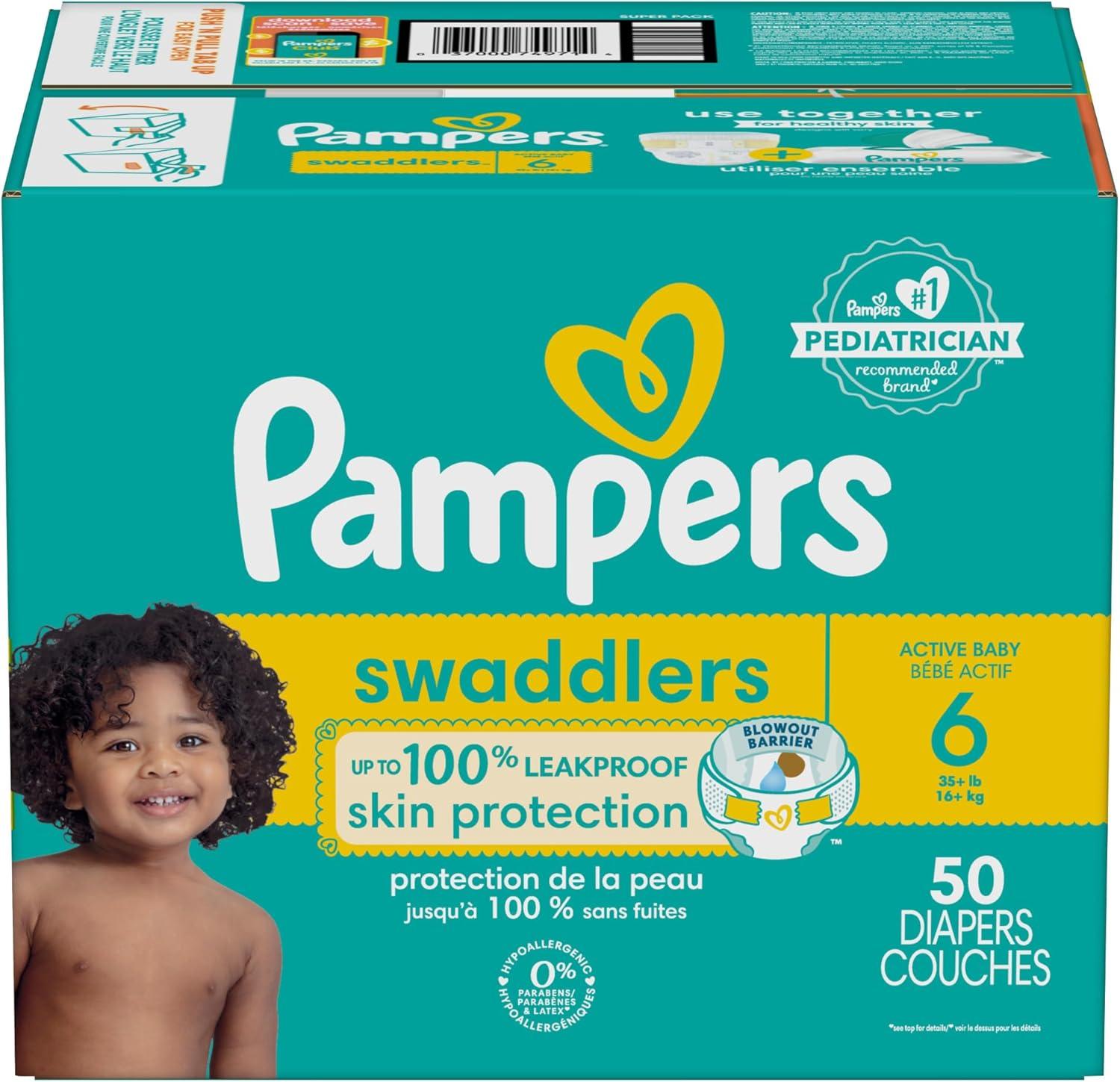 What keeps baby’s skin healthy? A diaper that doesn’t leave skin wet. That’s why Pampers Swaddlers absorbs wetness better** and provides up to 100% leakproof skin protection and up to 0% skin irritation to help keep your baby’s skin dry and healthy. Pampers Swaddlers are the #1 best-selling diaper* for good reason. A Blowout Barrier helps prevent leaks from escaping at the back of the diaper and Dual Leak-Guard Barriers at the legs protect where leaks happen most. With Swaddlers, you can rest assured that you have superior leak protection** while keeping baby's skin healthy. That's why Pampers Swaddlers are the #1 choice of U.S. hospitals, nurses and parents.*** Pampers BreatheFree Liner wicks away wetness, allowing baby's skin to breathe, while the LockAway Channels lock wetness away to help keep baby's skin dry and healthy. Pampers Swaddlers are dermatologist approved by the Skin Health Alliance, hypoallergenic, and free of parabens and latex, so you can trust them to be safe and gentle on your little one's delicate skin. Pampers Swaddlers are available in sizes Preemie through size 8 and feature designs with our newest animal characters, Shiloh the Elephant and Freddy the Duck! For trusted protection, trust Pampers, the #1 pediatrician recommended brand. Product and packaging may vary. Download the Pampers Club App today and earn Pampers Cash! Redeem your Pampers Cash for exclusive Pampers coupon savings and rewards. *Based on Nielsen dollar sales, L52W **Based on size 2 vs. leading value brand *** #1 choice of U.S. hospitals, nurses and parents: hospitals based on sales data; nurses vs. other hospital brands, among those with a preference; parents based on retail sales. ****Only redeemable via Pampers Club. No cash value. 0% PARABENS AND LATEX: Latex-natural rubber.