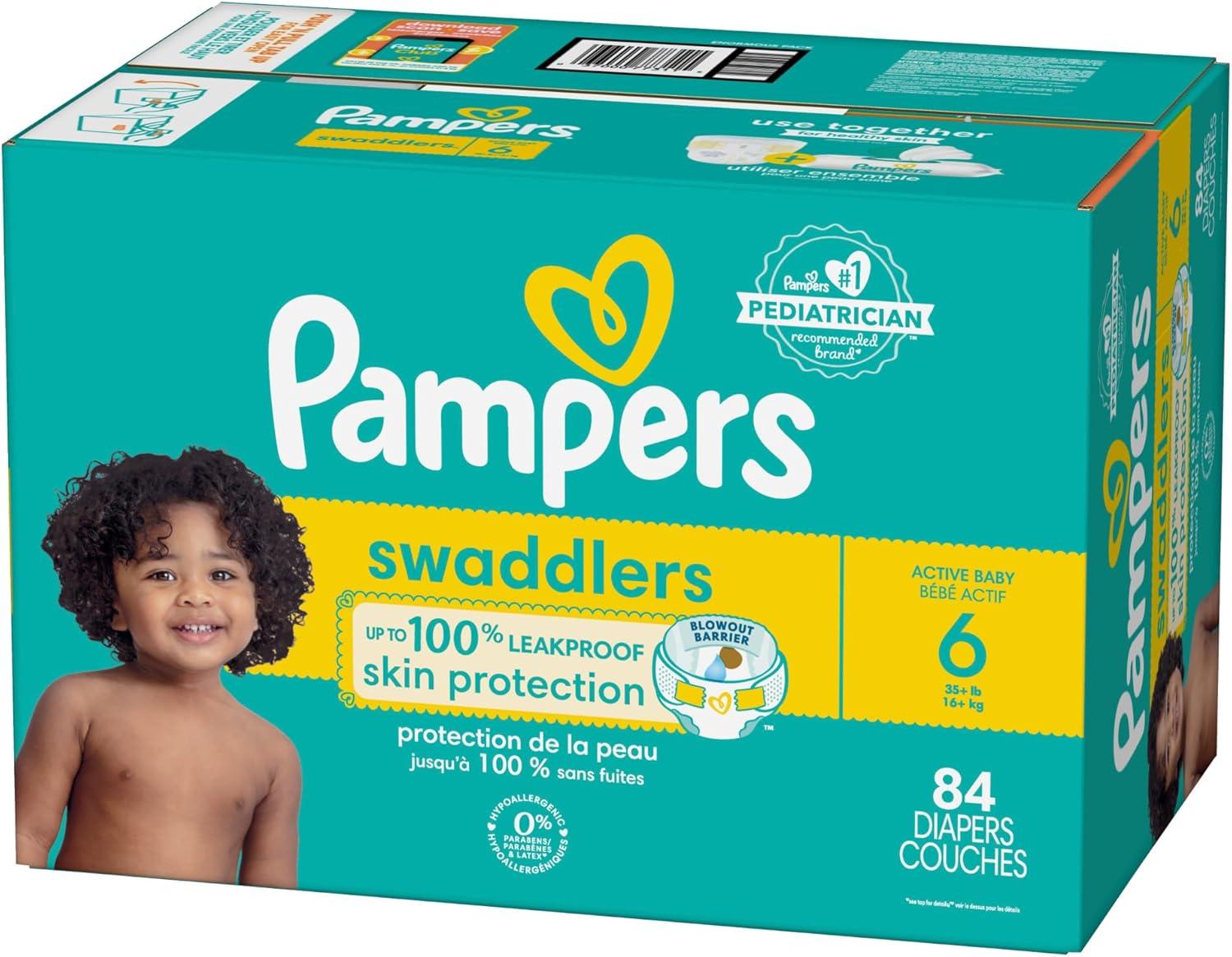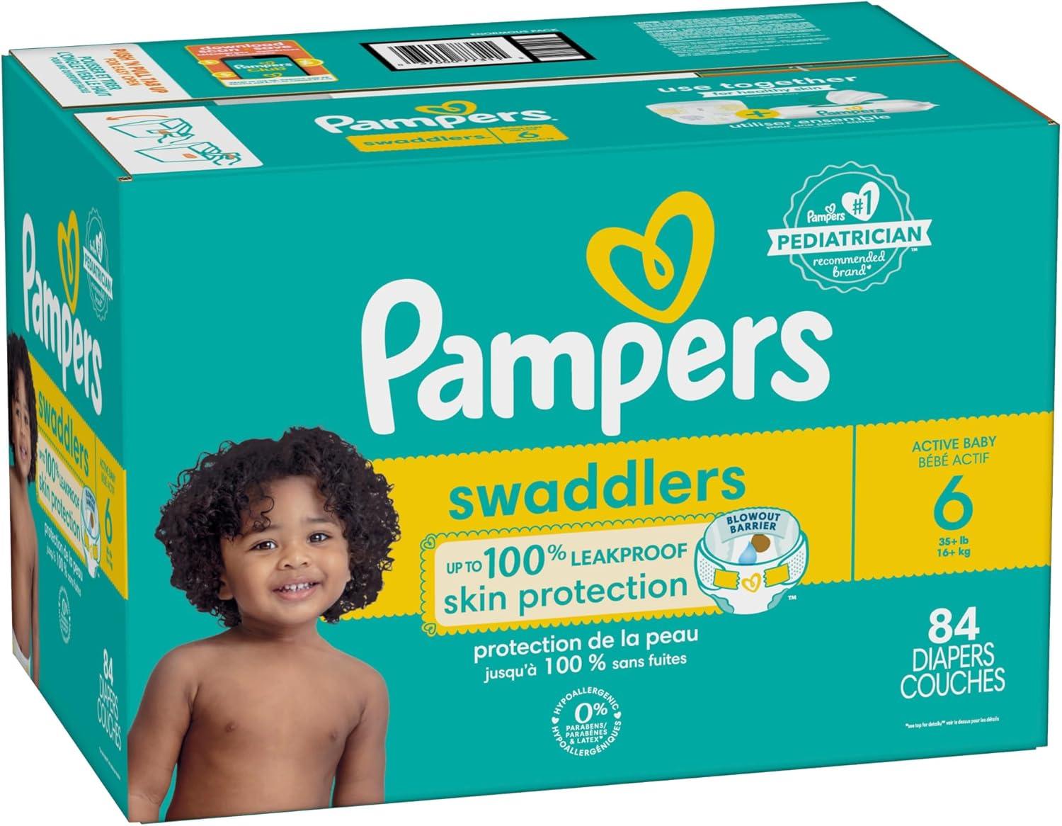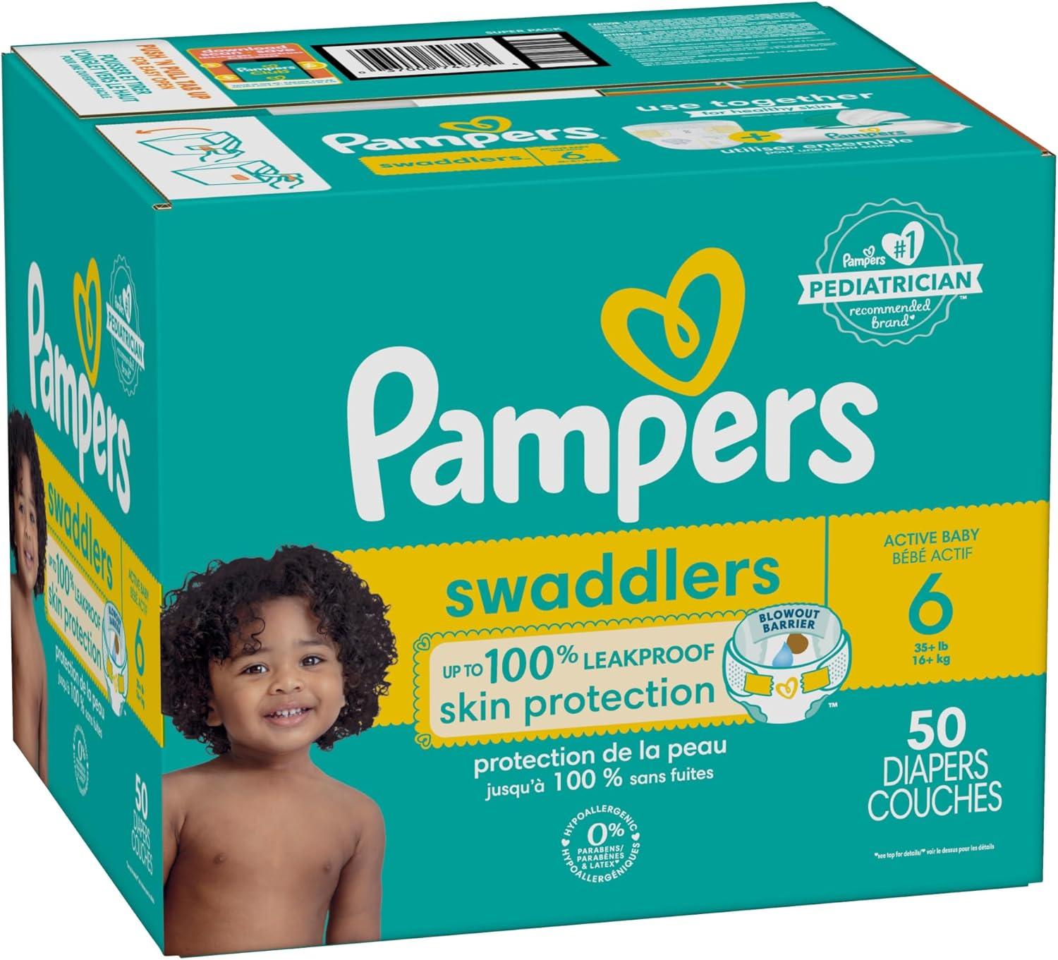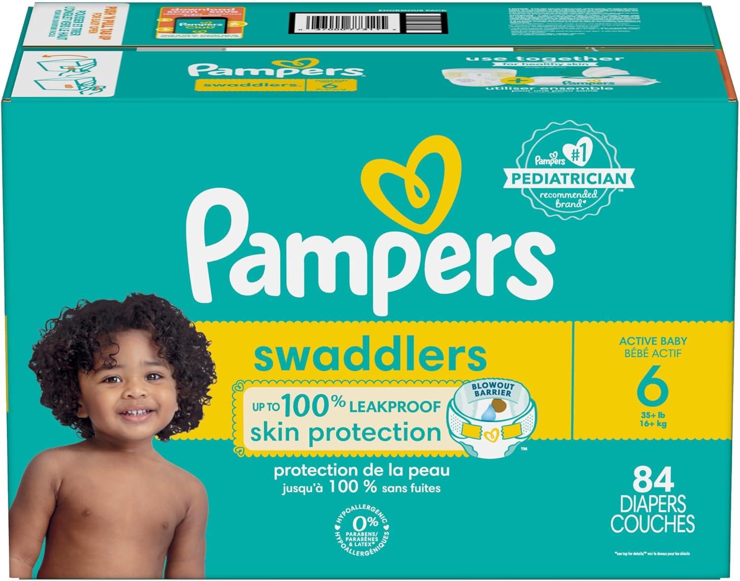 What keeps baby’s skin healthy? A diaper that doesn’t leave skin wet. That’s why Pampers Swaddlers absorbs wetness better** and provides up to 100% leakproof skin protection and up to 0% skin irritation to help keep your baby’s skin dry and healthy. Pampers Swaddlers are the #1 best-selling diaper* for good reason. A Blowout Barrier helps prevent leaks from escaping at the back of the diaper and Dual Leak-Guard Barriers at the legs protect where leaks happen most. With Swaddlers, you can rest assured that you have superior leak protection** while keeping baby's skin healthy. That's why Pampers Swaddlers are the #1 choice of U.S. hospitals, nurses and parents.*** Pampers BreatheFree Liner wicks away wetness, allowing baby's skin to breathe, while the LockAway Channels lock wetness away to help keep baby's skin dry and healthy. Pampers Swaddlers are dermatologist approved by the Skin Health Alliance, hypoallergenic, and free of parabens and latex, so you can trust them to be safe and gentle on your little one's delicate skin. Pampers Swaddlers are available in sizes Preemie through size 8 and feature designs with our newest animal characters, Shiloh the Elephant and Freddy the Duck! For trusted protection, trust Pampers, the #1 pediatrician recommended brand. Product and packaging may vary. Download the Pampers Club App today and earn Pampers Cash! Redeem your Pampers Cash for exclusive Pampers coupon savings and rewards. *Based on Nielsen dollar sales, L52W **Based on size 2 vs. leading value brand *** #1 choice of U.S. hospitals, nurses and parents: hospitals based on sales data; nurses vs. other hospital brands, among those with a preference; parents based on retail sales. ****Only redeemable via Pampers Club. No cash value. 0% PARABENS AND LATEX: Latex-natural rubber.